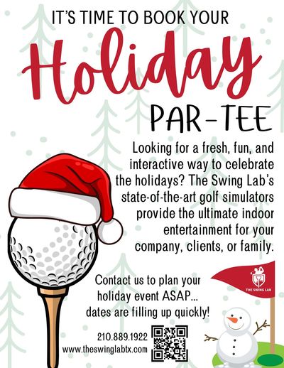 This year, trade the stiff suits and boring small talk for swings, snacks, and good times at The Swing Lab! Our state-of-the-art golf simulators are the perfect, weather-proof venue for your company, family, or group holiday celebration. Whether you're a scratch golfer or a total beginner, everyone will have a blast playing world-famous courses and interactive games in a relaxed, casual environment, getting a little competitive! Don't get stuck in the rough—prime holiday party dates book up fast. We're ready to help you plan a "hole-in-one" holiday event!